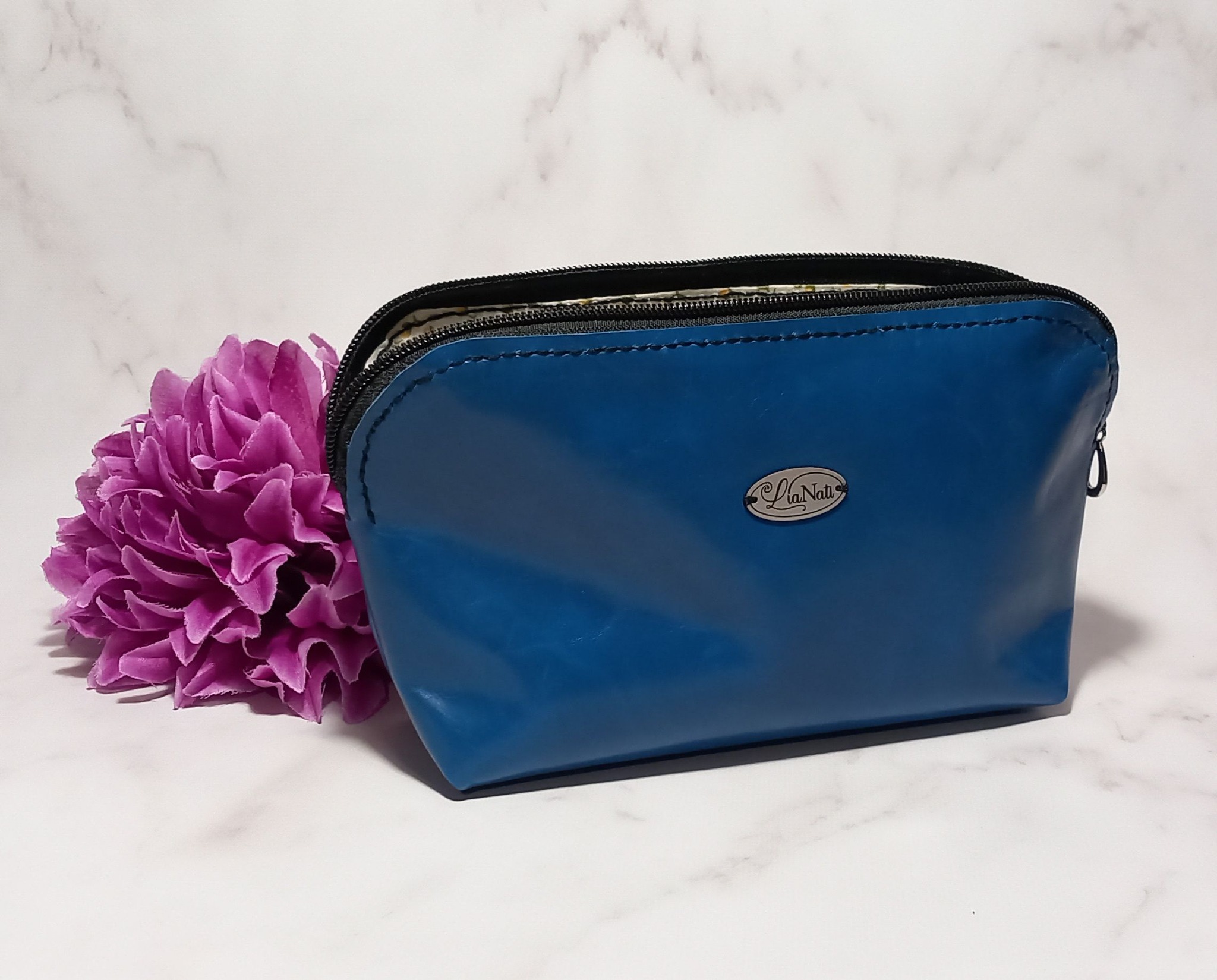 Niniejsza kosmetyczka posiada klasyczny kształt, natomiast rozmiar sprawia, że bez problemu znajdzie się w niej miejsce na Twoje najpotrzebniejsze kosmetyki lub inne przybory. W środku podszewka bawełniana.